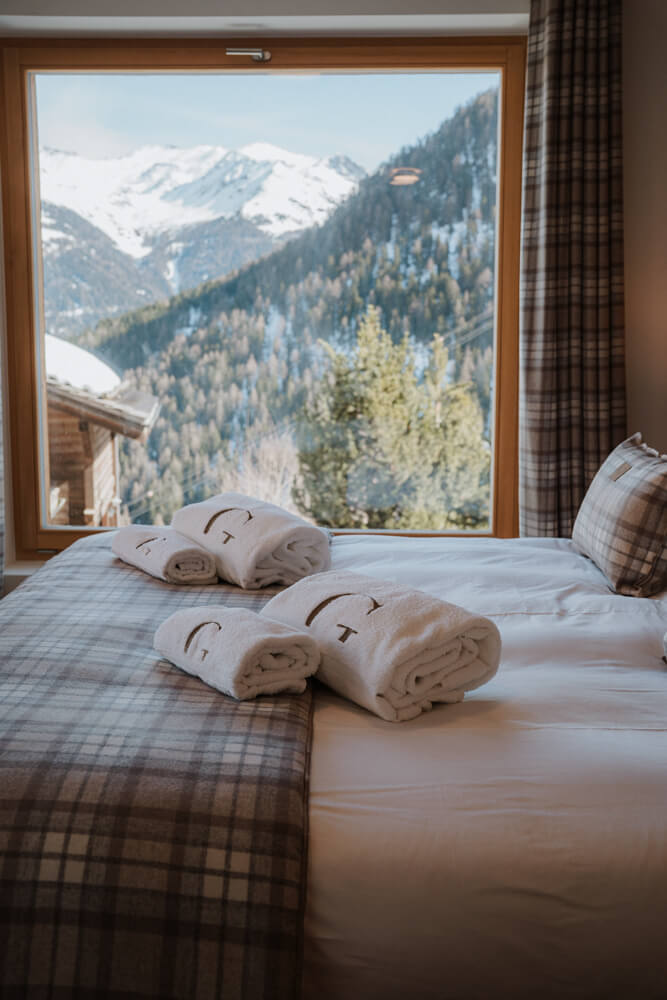 Dieses freistehende Chalet auf drei Ebenen verfügt über drei Schlafzimmer mit Doppelbett (180 × 200 cm), ein Kabinenschlafzimmer mit Etagenbett (90 × 190 cm) sowie über drei Badezimmer mit Dusche und Badewanne. Der Wohnbereich bietet eine Sitzecke mit Fernseher, eine voll ausgestattete Küche, einen Holzofen und großzügige Außenbereiche mit Panoramablick auf die umliegenden Berge von Sorebois und Nava. Das Chalet ist nach allen Himmelsrichtungen ausgerichtet, sodass Licht und Aussicht sich im Laufe des Tages ständig ändern. Zur Ausstattung gehören Haushaltsgeräte wie Waschmaschine und Trockner, Geschirrspüler, Nespresso-Kaffeemaschine, notwendige Küchenutensilien usw.